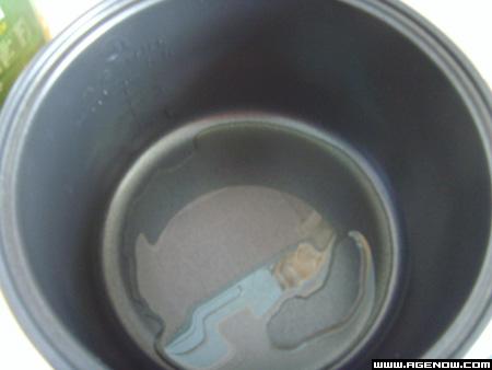 电饭煲按下煮饭健预热1分钟后拿出,锅有点热就可以